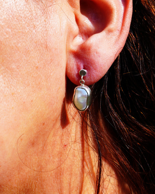 Boucles d'oreilles en véritable perle de keshi, serties en clos (argent 940)