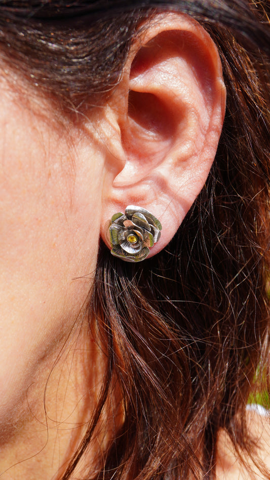Boucles d'oreilles roses et saphirs jaunes (argent 940)