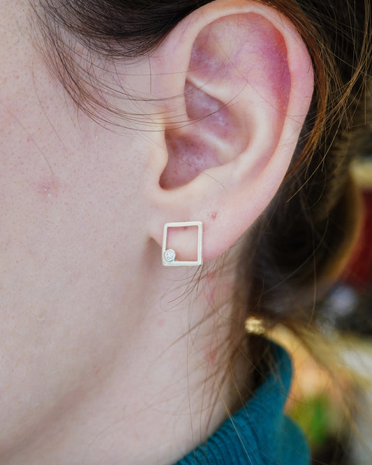 Boucles d'oreilles puces "intervalle d'espace temps", (argent 940 et diamant de culture)