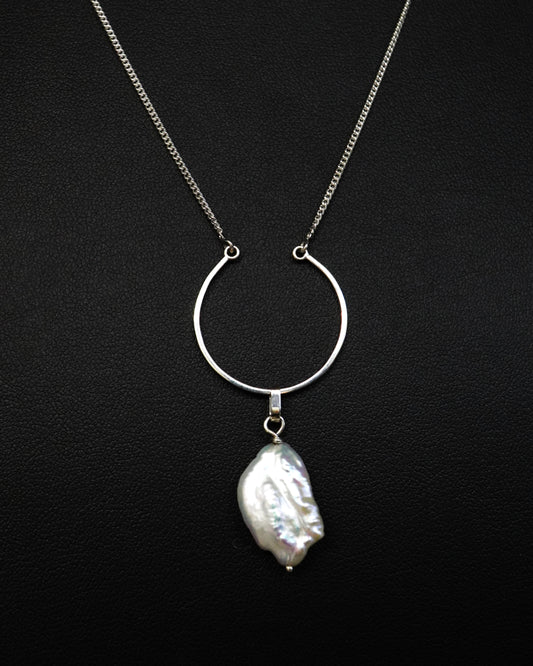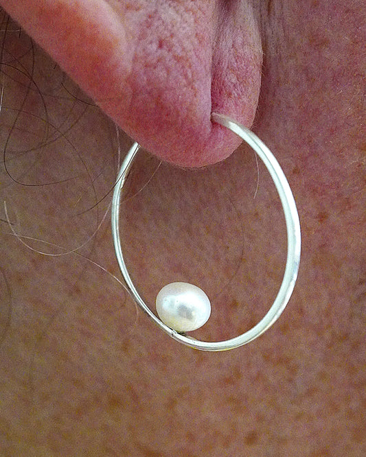 Boucles d'oreilles "ellipse", créole (perle de culture d'eau douce et argent 940)