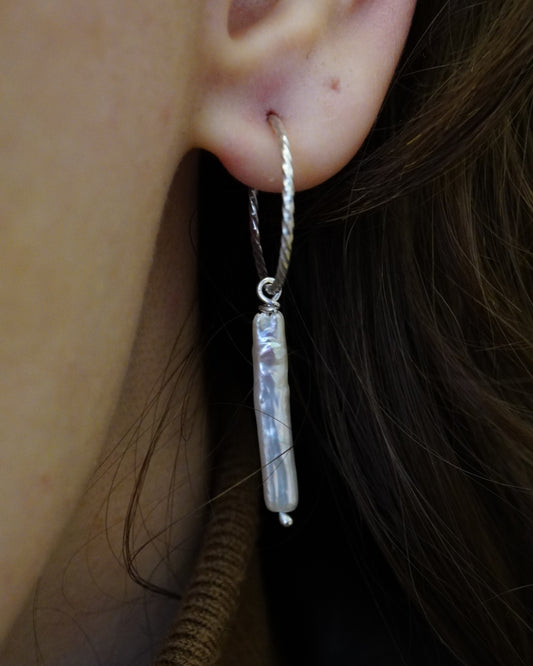 Boucles d'oreilles "ellipse" torsadée, créole (perle de culture d'eau douce et argent 940)