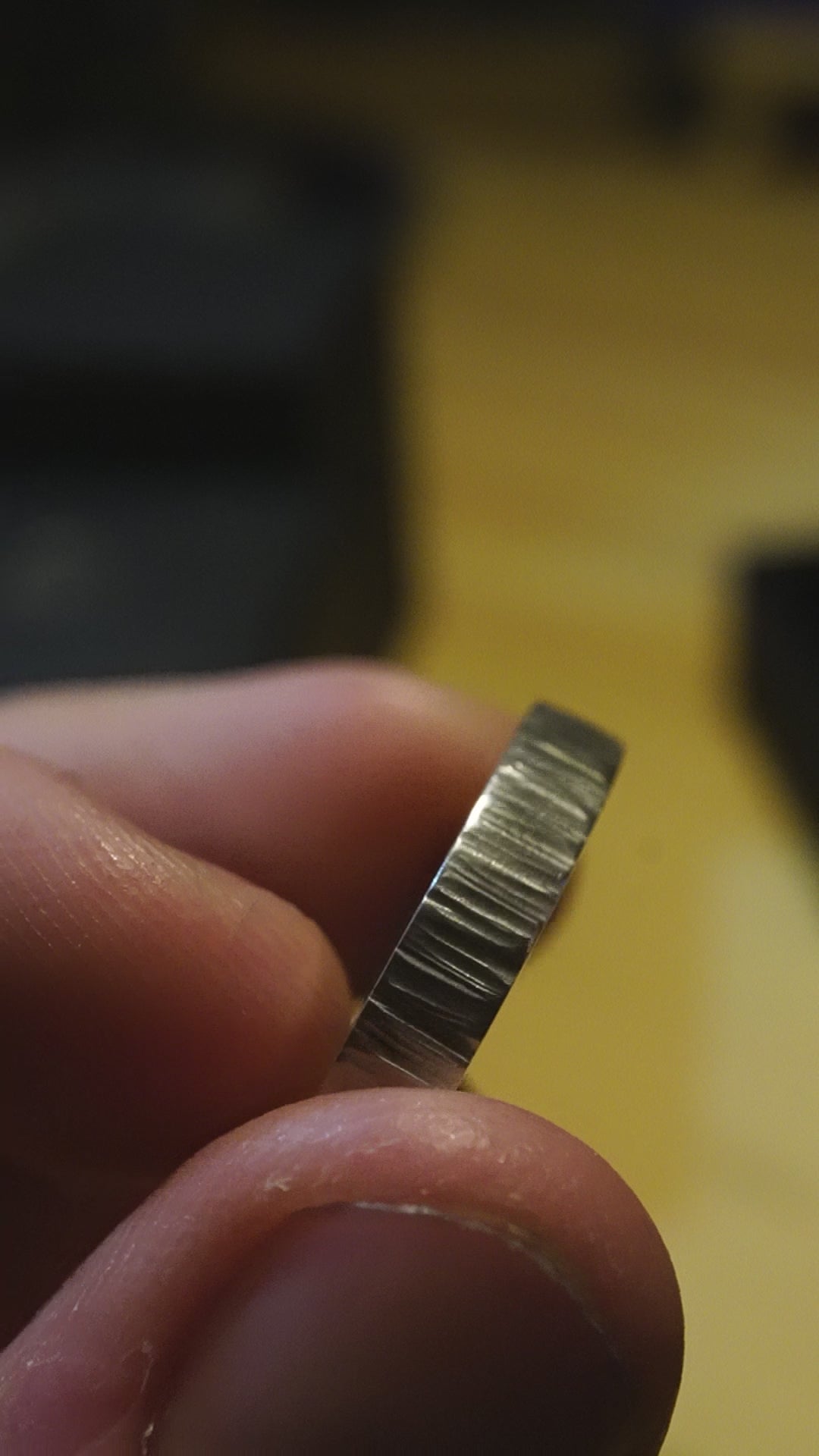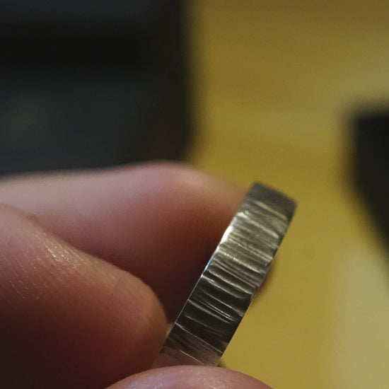 - Bague "basalte martelé", largeur de l'anneau modifiable (5mm sur la photo). Disponible en or ou argent.