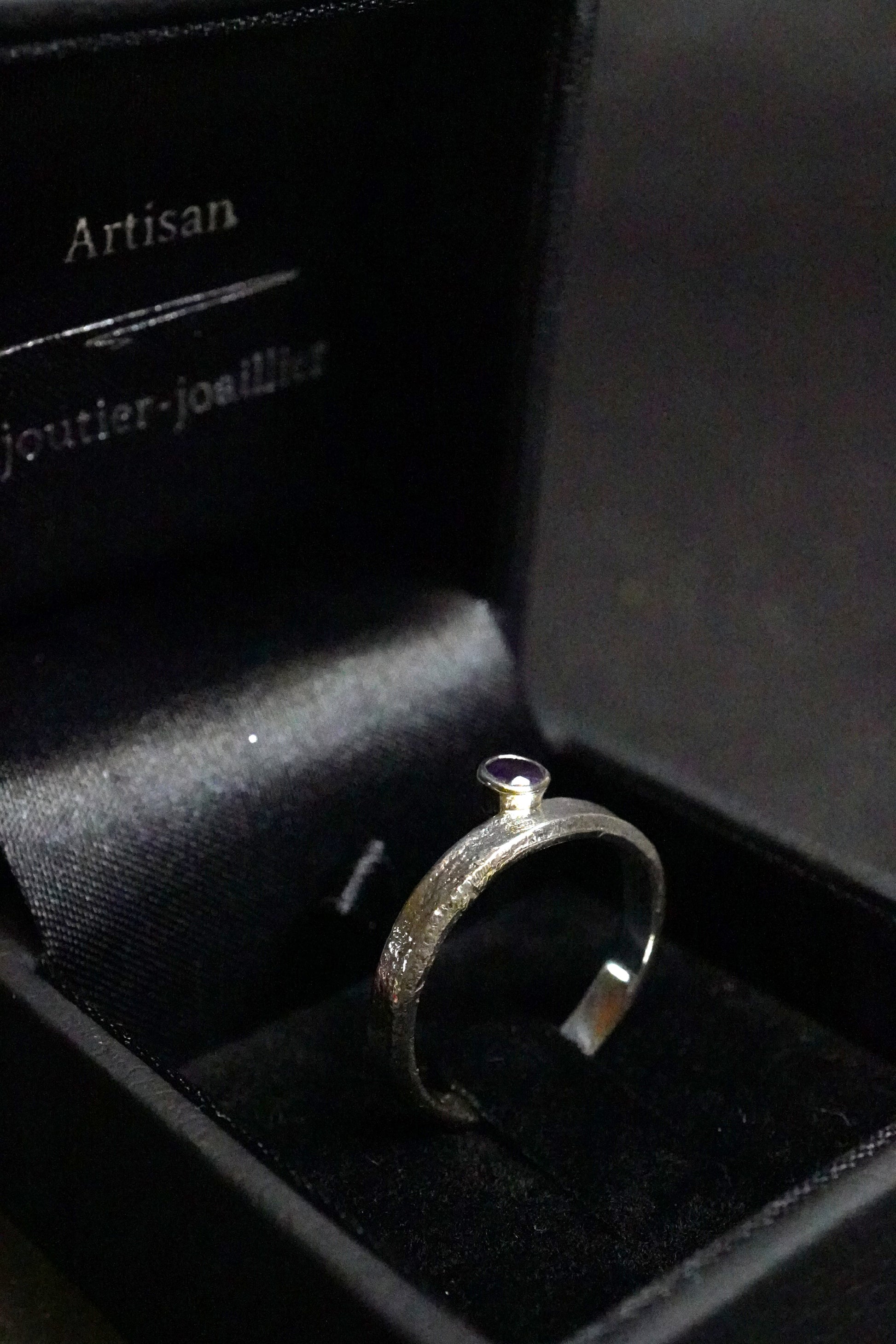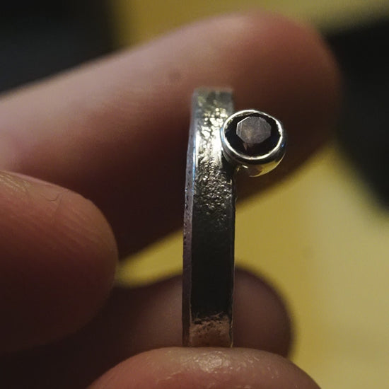 - (Chaque pièce réalisée est unique). Anneau réticulé fin (2.5mm) conçu en argentium 940 recyclé, serti d'une iolite de 3.5mm. L'argentium, pur à 94%, ternit 7x moins vite que de l'argent classique, possède une couleur plus blanche, et est hypoallergénique. C'est un argent de plus haute qualité que le 925 millièmes.