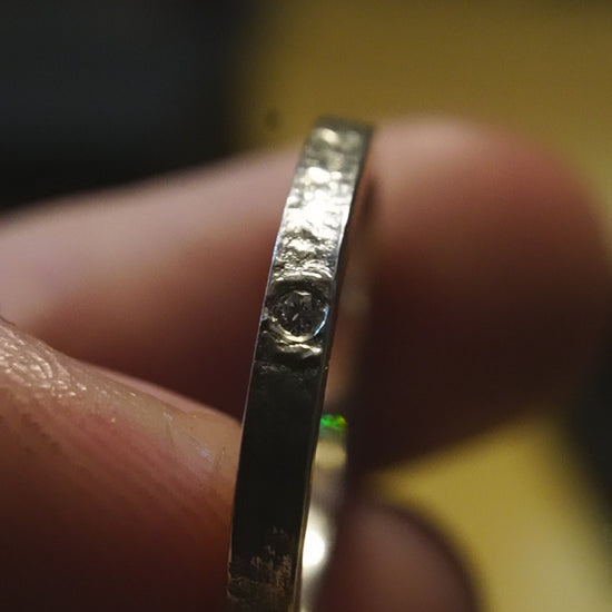 - Prix à la demande. Bague "fusion" réticulée, serti d'un brillant de 1.8mm au choix : diamant naturel ou de culture, rubis ou saphirs (bleu, vert, jaune, violet, brun ...). La largeur est également modifiable (2.5mm sur la photo). Disponible en or et argent 940 hypoallergénique.