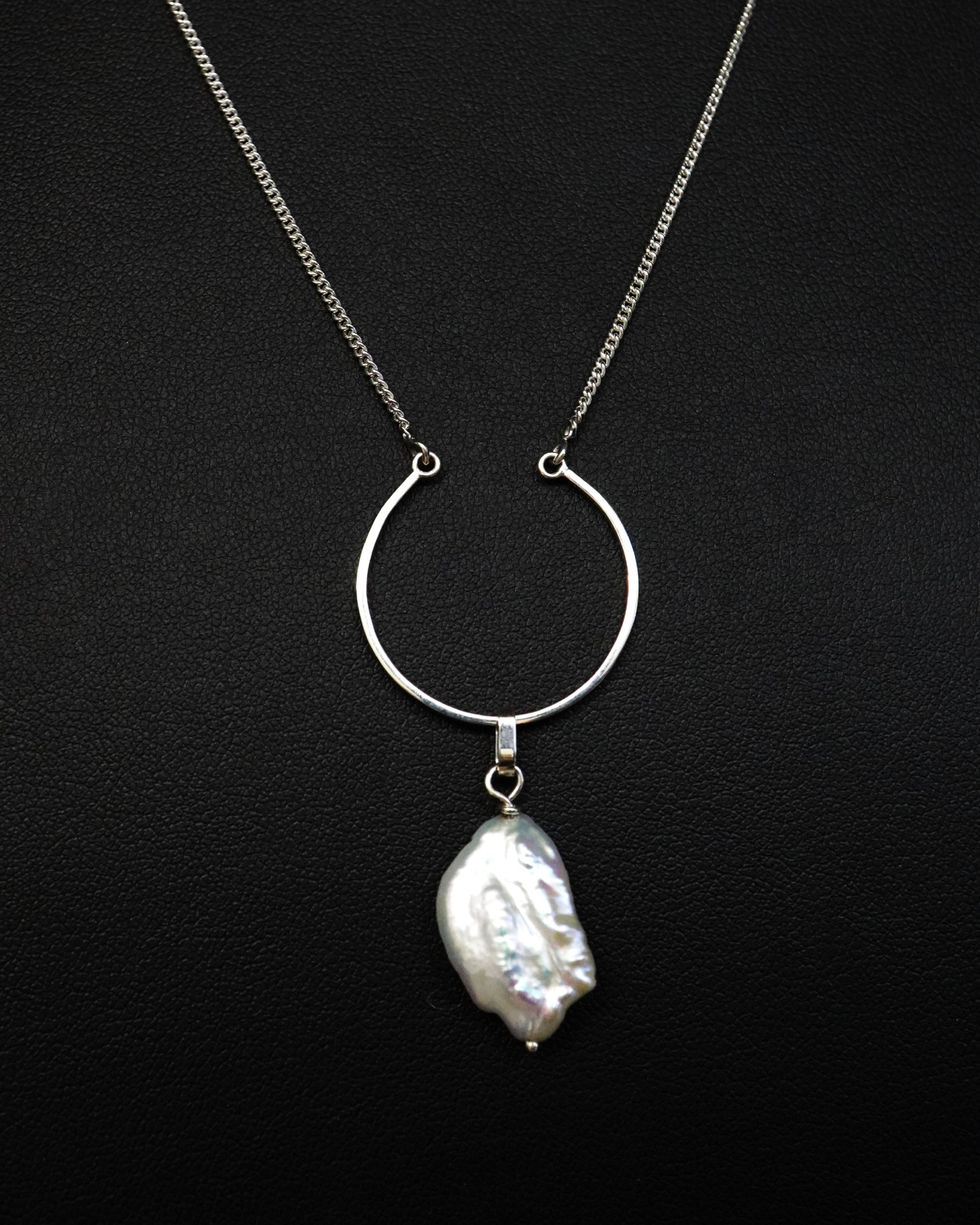 - (Chaque pièce réalisée est unique). Pendentif "ellipse", argent 940 et perle baroque d'eau douce. L'argentium, pur à 94%, ternit 7x moins vite que de l'argent classique, possède une couleur plus blanche, et est hypoallergénique. C'est un argent de plus haute qualité que le 925 millièmes.
