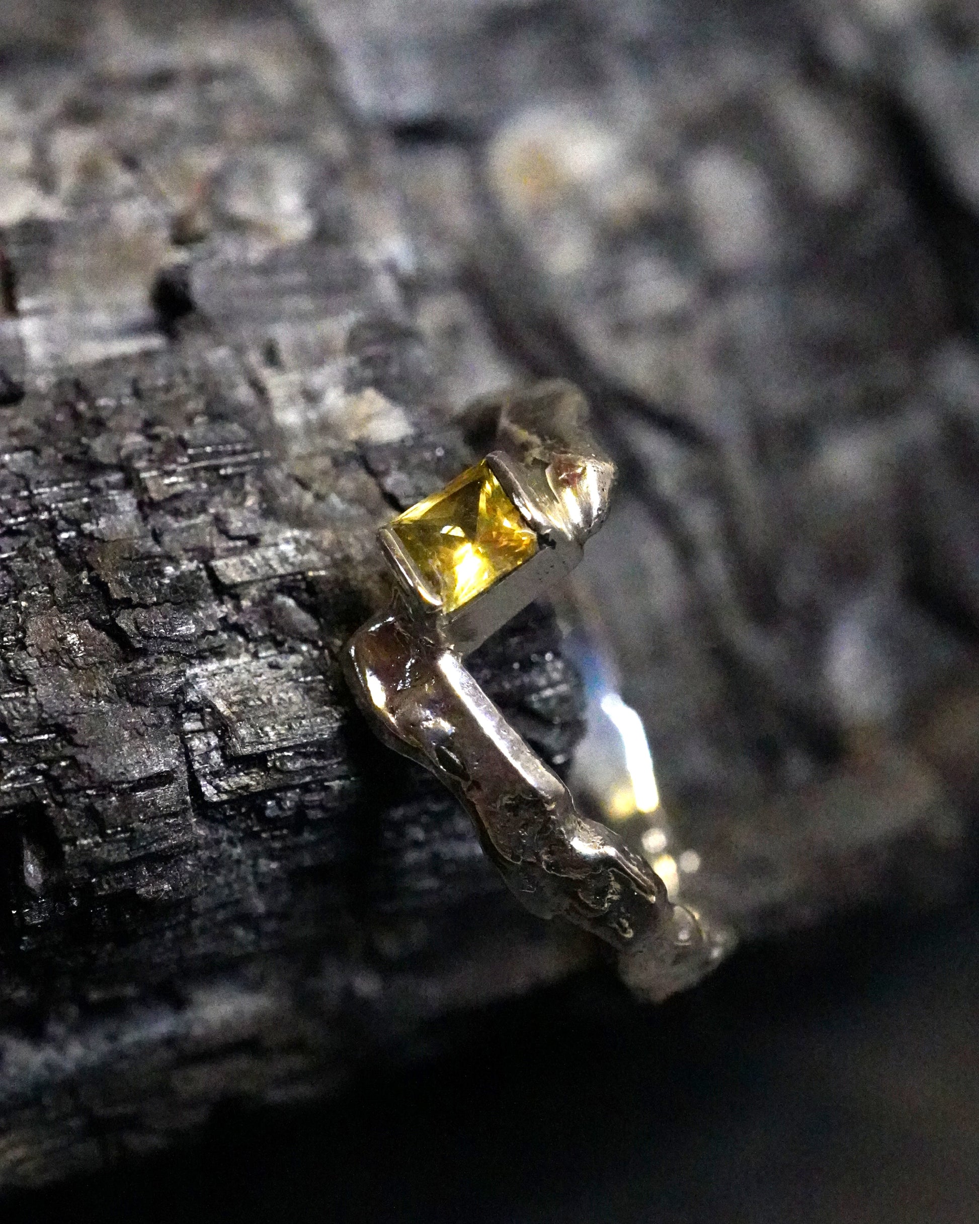 - Prix à la demande. Solitaire "fusion", corps de bague réticulé et gemme taille princesse de 3.5mm au choix : diamant naturel ou de synthèse, rubis ou saphir (bleu, vert, jaune, violet, brun ...). Disponible en or ou argent 940 hypoallergénique.